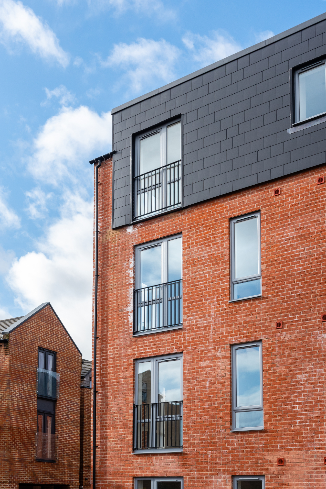 The form of the proposed buildings are simple, pitched roof, terraced buildings. The window fenestration is rigorous in its ordered arrangement similar to the adjacent mill building however windows have been increased in size with a simplified detail to provide a contemporary appearance and fill the proposed apartments with natural light.